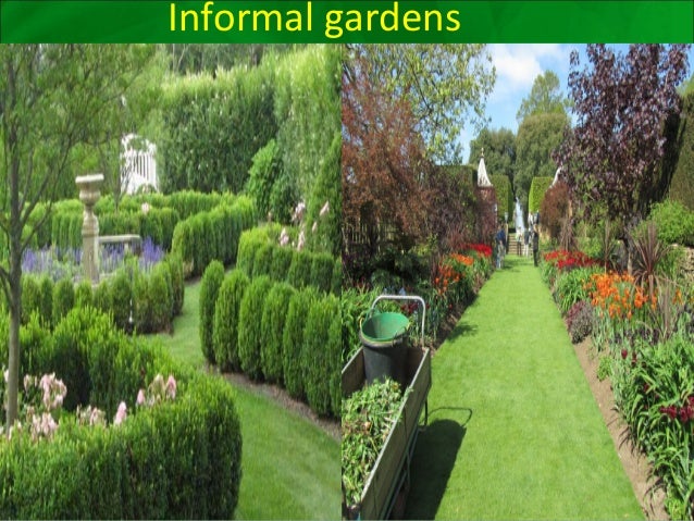 Furnishings are comfortable and inviting plants are allowed to spread freely. Informal simply means that the garden follows much looser lines curves and usually takes its design from the lay of the land.